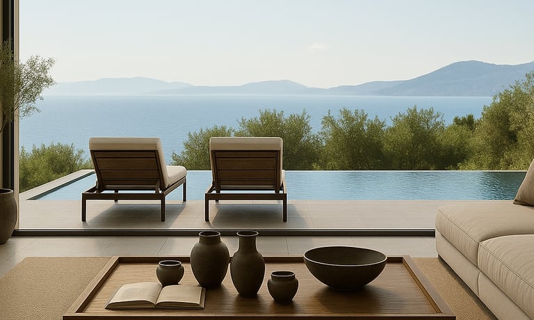 Experience luxury in our subterranean villa with stunning Ionian Sea views, featuring three spacious bedrooms, a private pool, and a hot tub for ultimate relaxation.