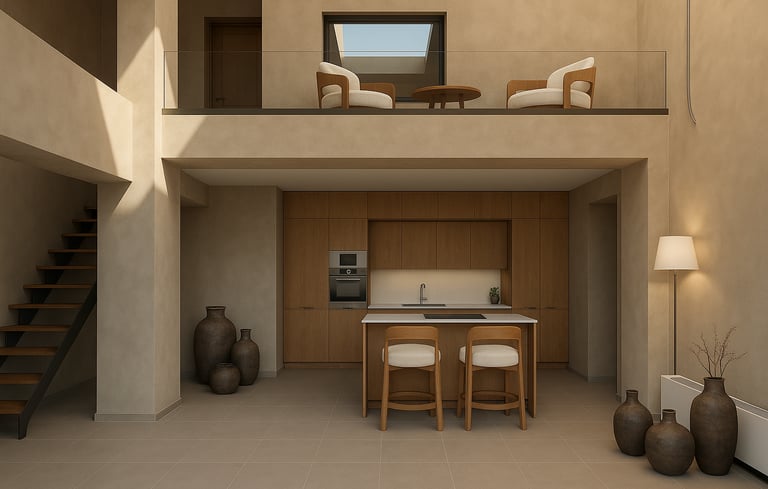 Mezzanine Floor - Cooling and Heating System - TV - King Size Double bed - En Suite Bathroom with Walk-in shower