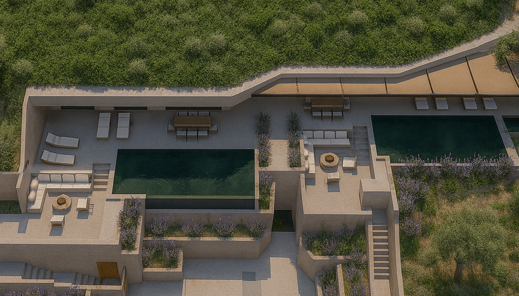 Nomade Estate is the ultimate expression of Nomade, a six-bedroom haven created when both villas, Nomade I and Nomade II, are rented as one. An expansive private estate offering space, elegance, and complete seclusion for unforgettable group stays.